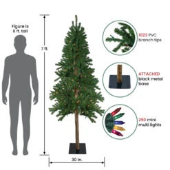 7′ Pre-Lit Slim Traditional Woodland Alpine Artificial Christmas Tree – Multicolor Lights