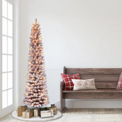 6.5′ Pre-lit Flocked Fashion Blue Pencil Artificial Christmas Tree, Clear Lights