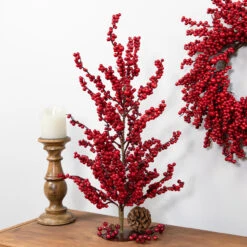 23.5″ Brown And Red Berries Artificial Christmas Twig Tree – Unlit