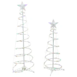 Set Of 2 LED Lighted Multi-Color Outdoor Spiral Christmas Cone Trees 3′, 4′