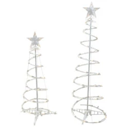 Set Of 2 Lighted Clear Outdoor Spiral Christmas Cone Trees 4′, 6′