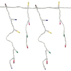 Set Of 100 Multi Twinkling Icicle Christmas Lights 7 Ft White Wire