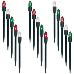 Set Of 15 Lighted Red, Clear And Green C9 Christmas Pathway Marker Decor