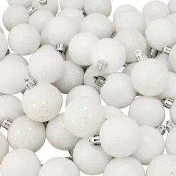 96ct White Shatterproof 4-Finish Christmas Ball Ornaments 1.5″ (40mm)