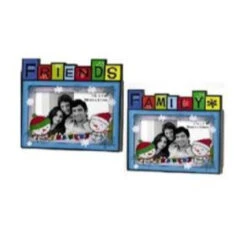 Set Of 2 Blue And Red Family And Friends Photo Frame Christmas Ornaments 3.5″