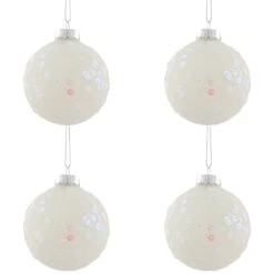 4ct White And Gray Antique Glass Christmas Ball Ornaments 4″ (100mm)