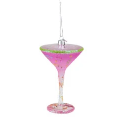 7″ Pink And Clear Blown Happy Birth-Tini Martini Cocktail Glass Christmas Ornament