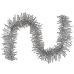 9 X 12 Pre-lit Metallic Sterling Silver Artificial Christmas Tinsel Garland – Clear Lights