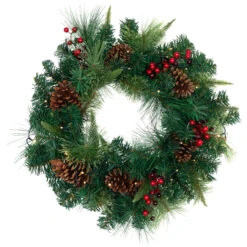 24″ Pre-Lit Artificial Mixed Pine And Berries Christmas Wreath