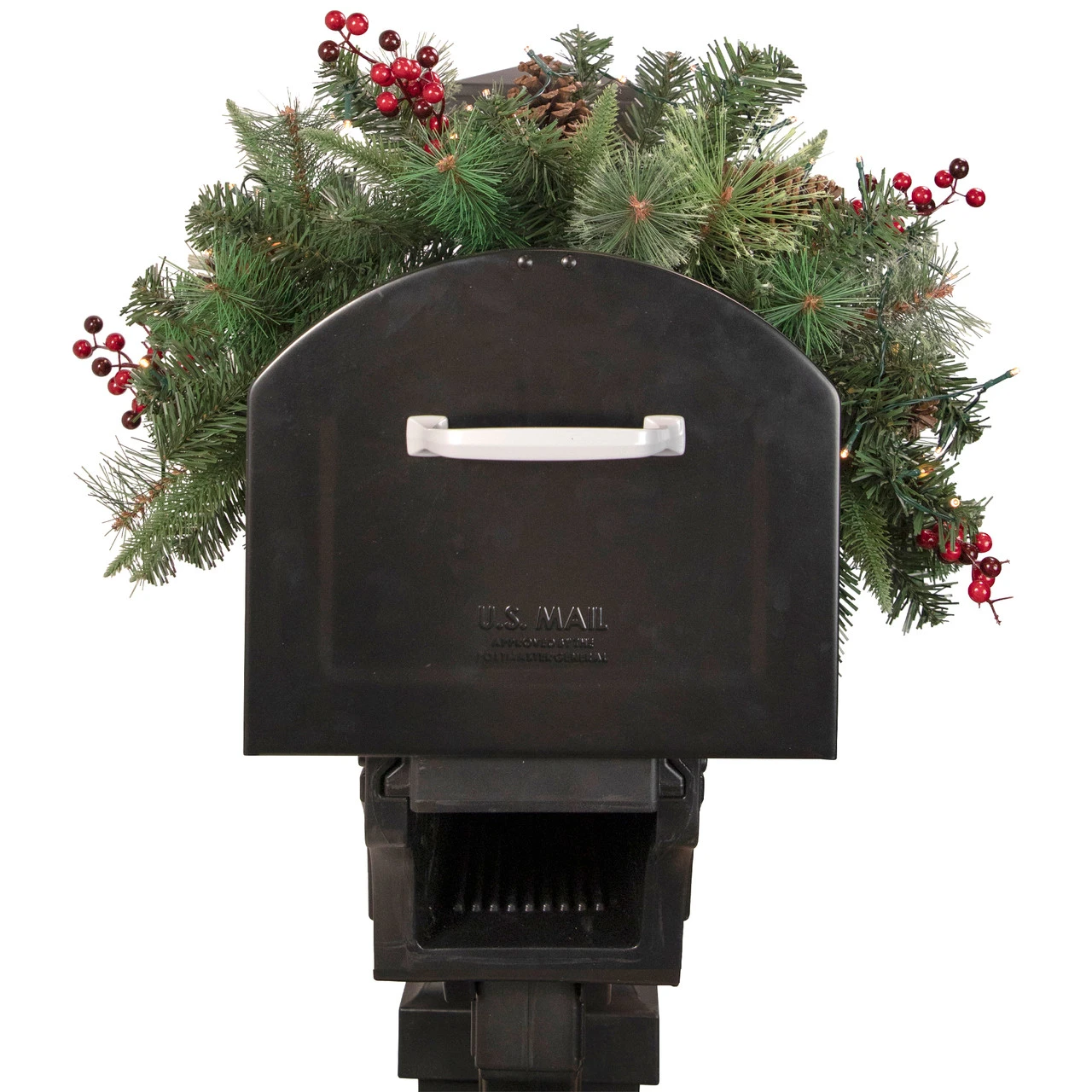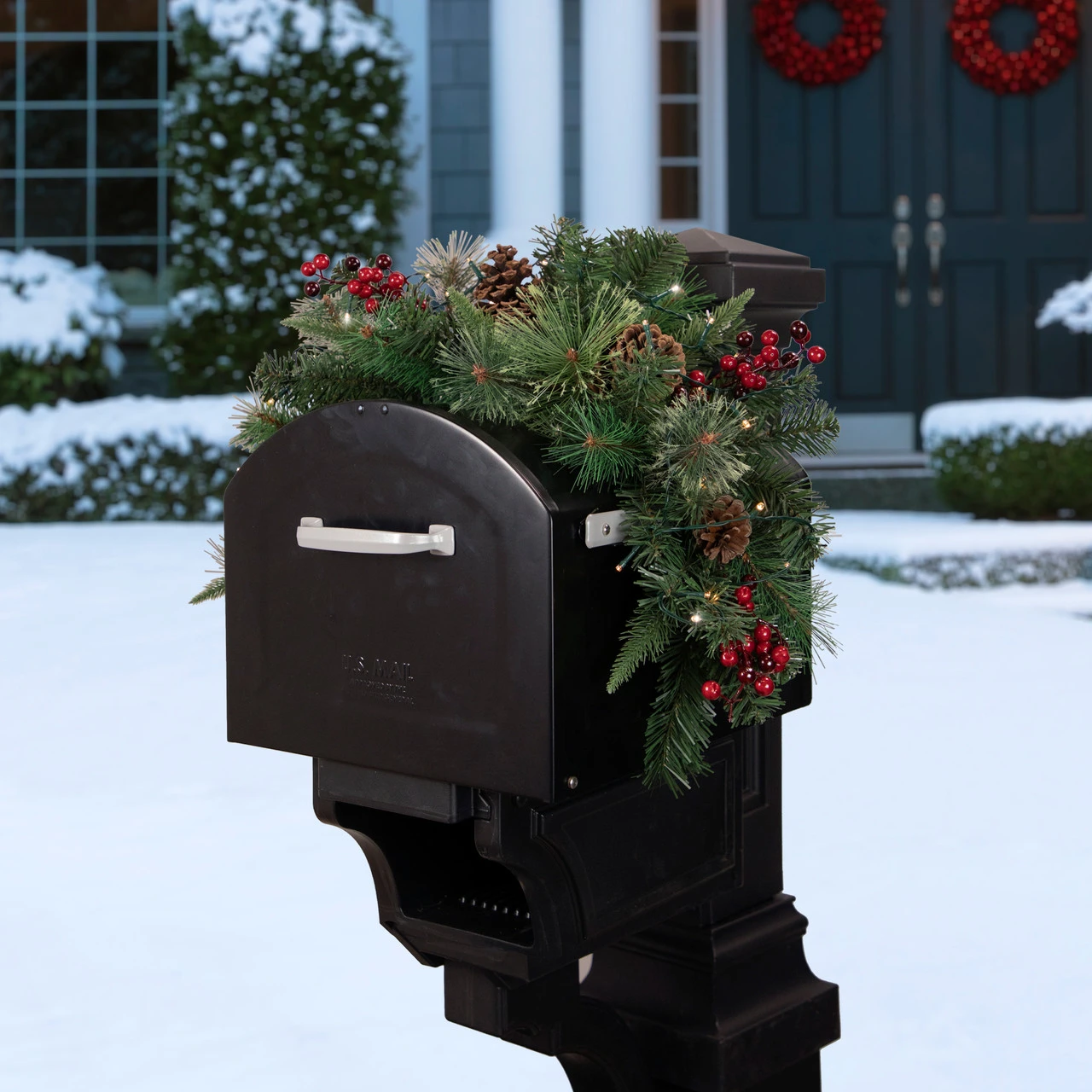 Lighted pre-decorated artificial pine mailbox swag