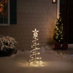 3ft LED Lighted Spiral Cone Tree Outdoor Christmas Decoration, Warm White Lights
