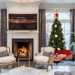 6′ Green And Red Musical Lighted Snowing Artificial Christmas Tree, White LED Lights