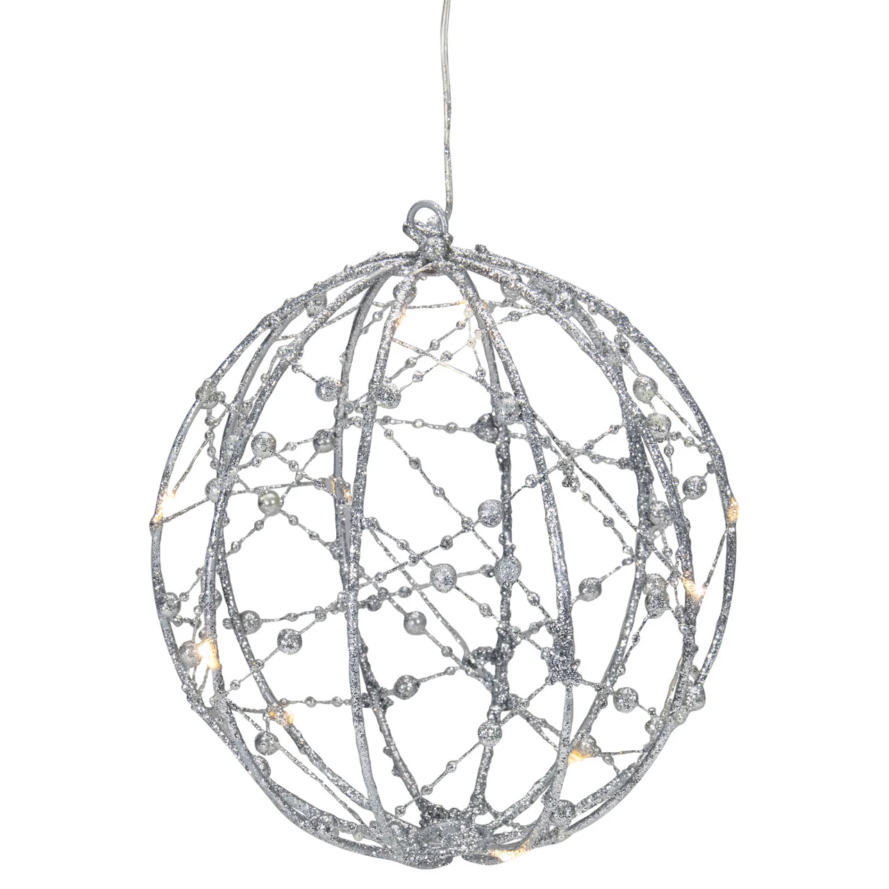 Wire ball wrapped in LED string lights