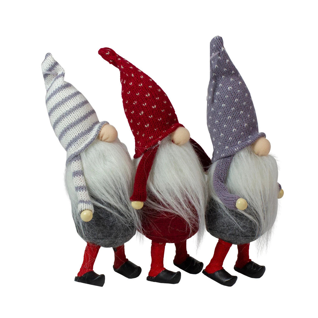 Set of 3 red, gray and white Christmas gnome figures