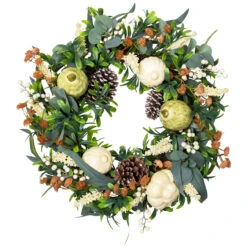 Green And White Mixed Foliage Spring Floral Wreath, 27.5-Inch