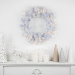 Pre-Lit White Alaskan Pine Artificial Christmas Wreath, 24-Inch, Warm White LED Lights